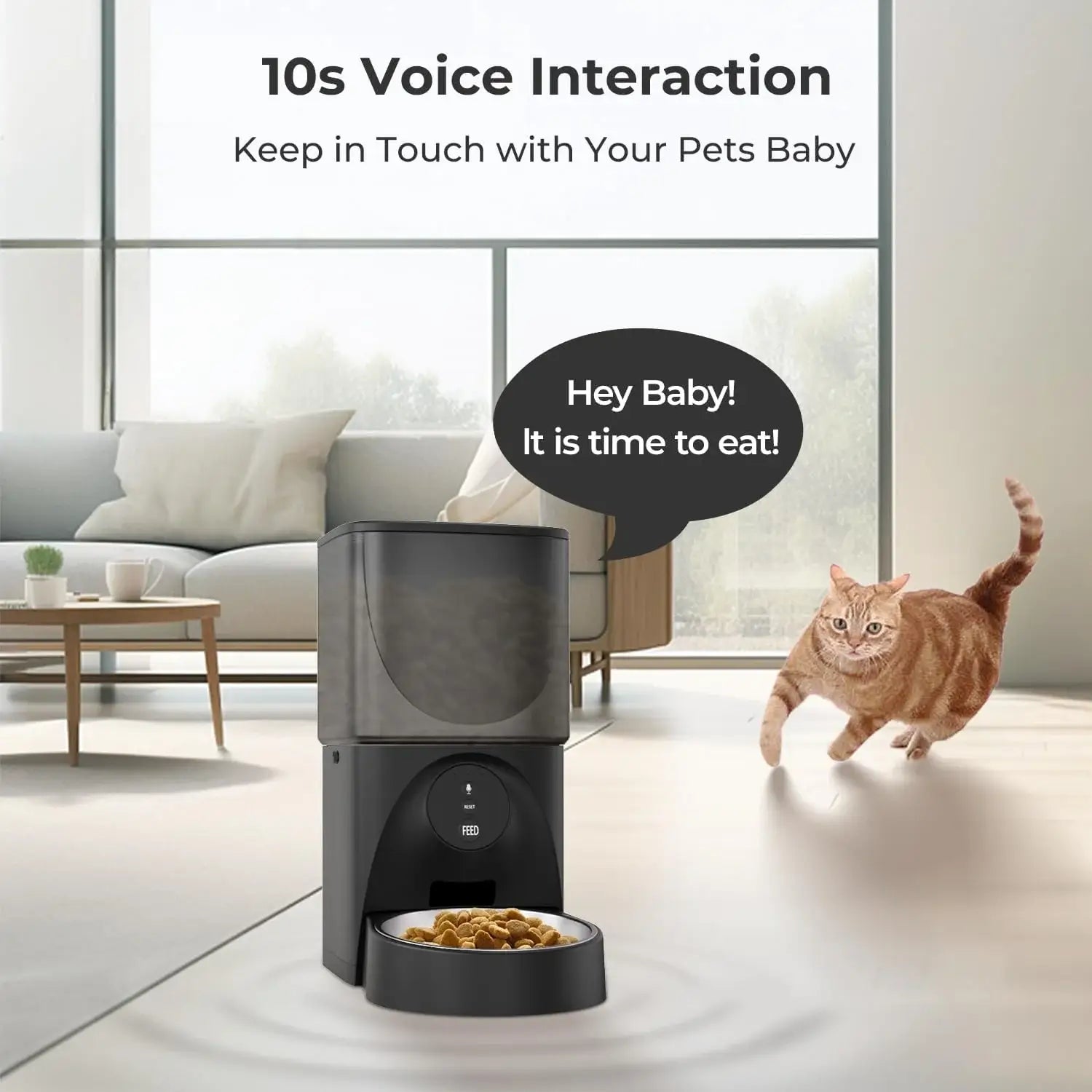 - VOCALIZED PET FEEDING ASSISTANT: Familiar voice can entice your fur babies to eat and comfort them when you are not at home. Press the “Record” button to record the 10s exclusive voice between you and your furry friend. This message will be played every time a feeding is allocated to call your cat to eat on time. Hearing your voice, they will no longer feel lonely