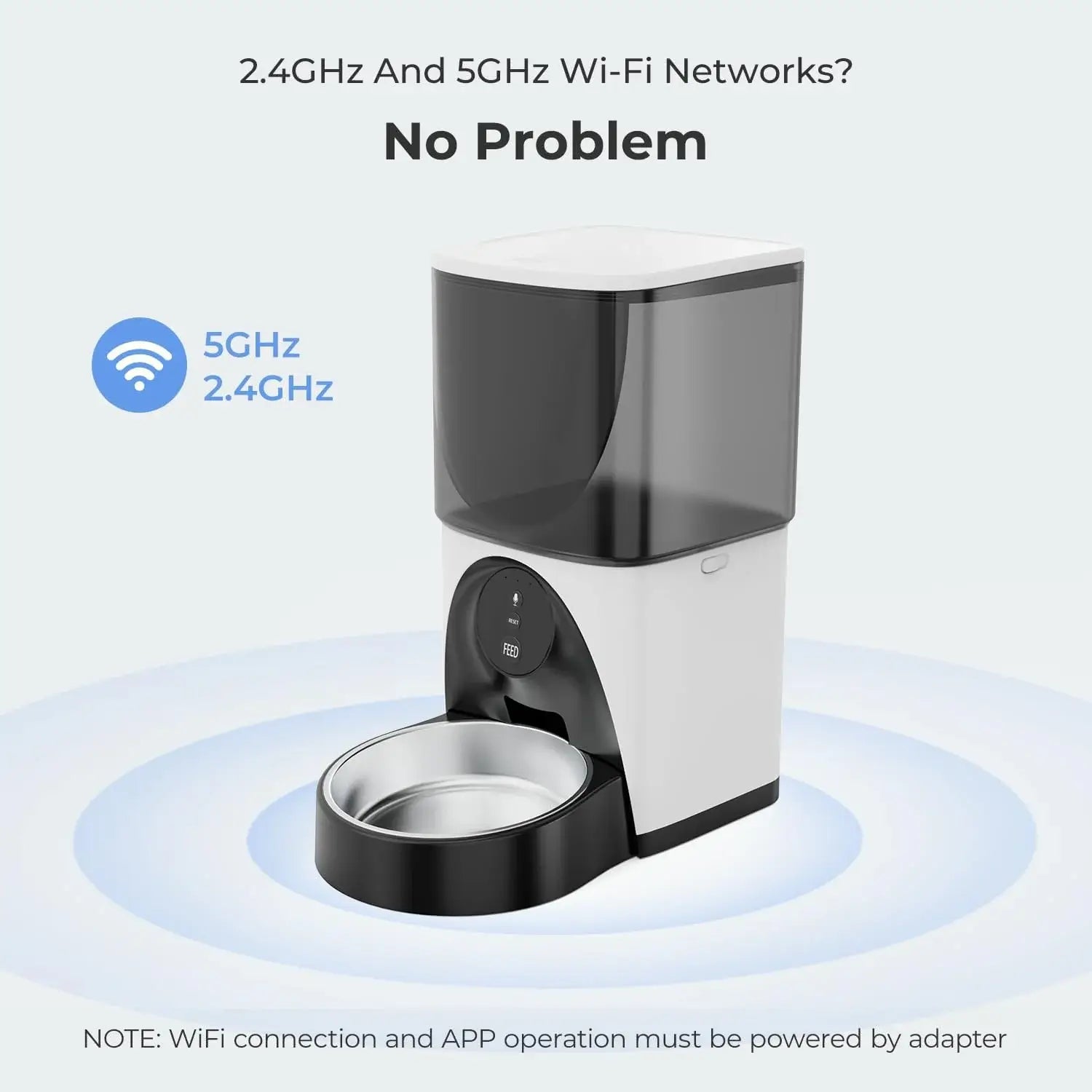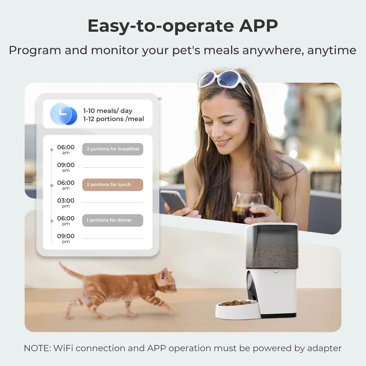- PET SITTER WHEN YOU ARE BUSY: Cobectal automatic pet feeder supports 5GHz and 2.4GHz WiFi networks, and you can easily customize feeding schedule via Smart Life APP. Schedule up to 10 meals per day and 1-12 servings per meal (1/24 cup ≈ 10 grams per serving), to help your furry friend develop good eating habits. You don't have to keep an eye on your pet's diet when you're resting or busy on the go