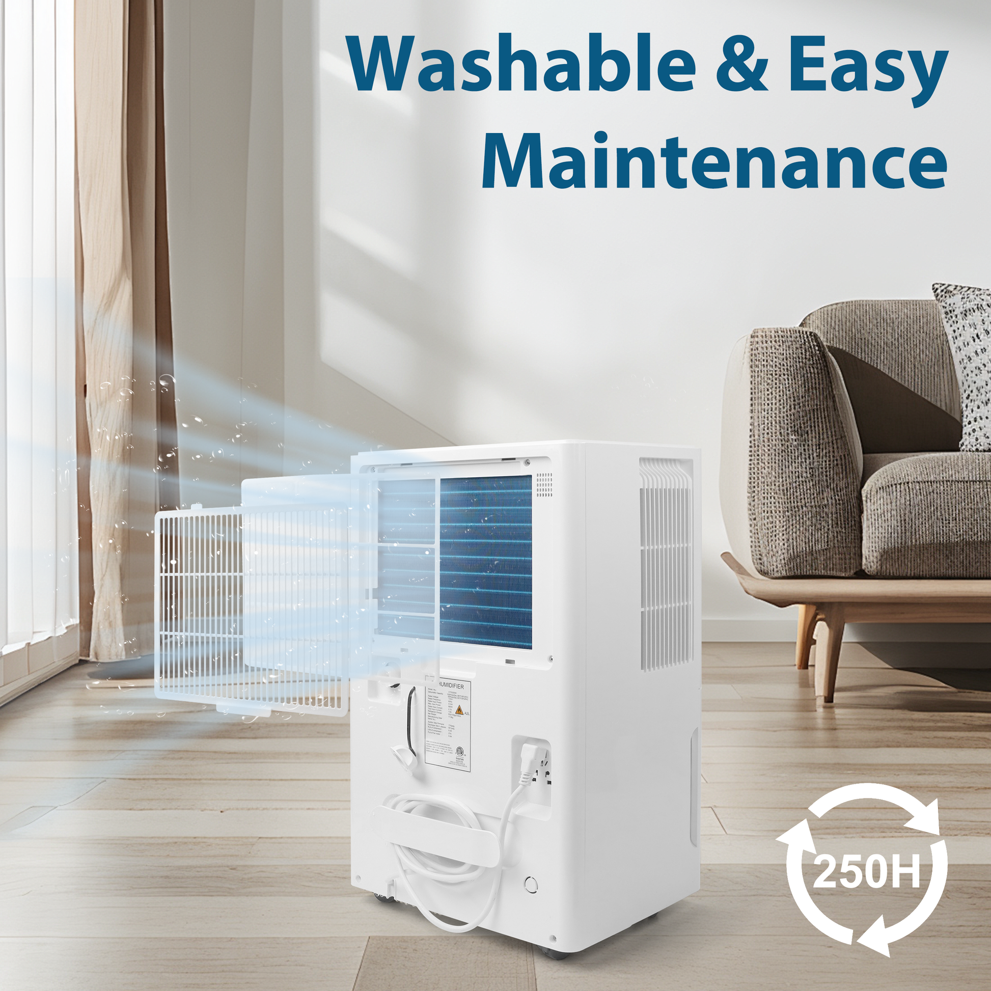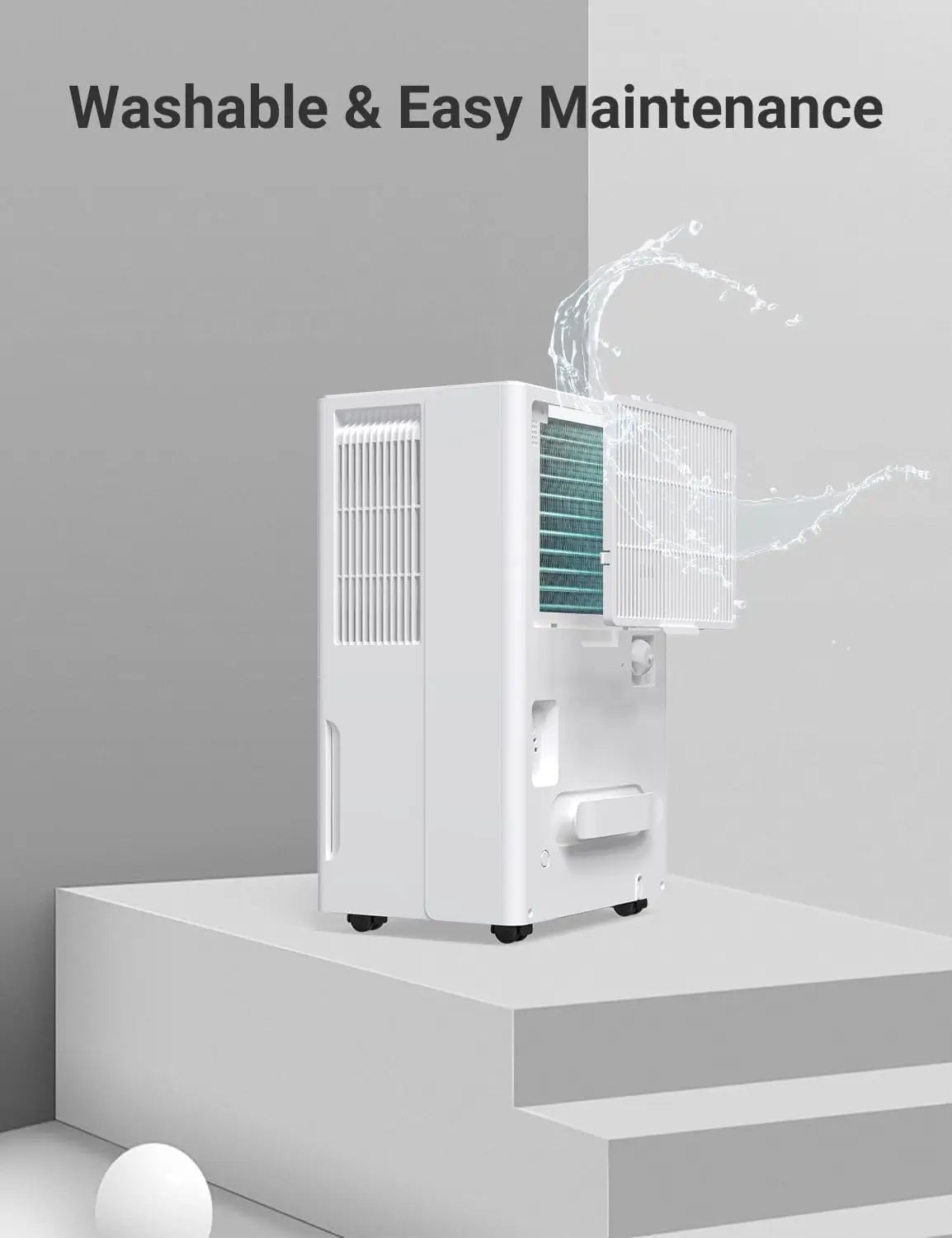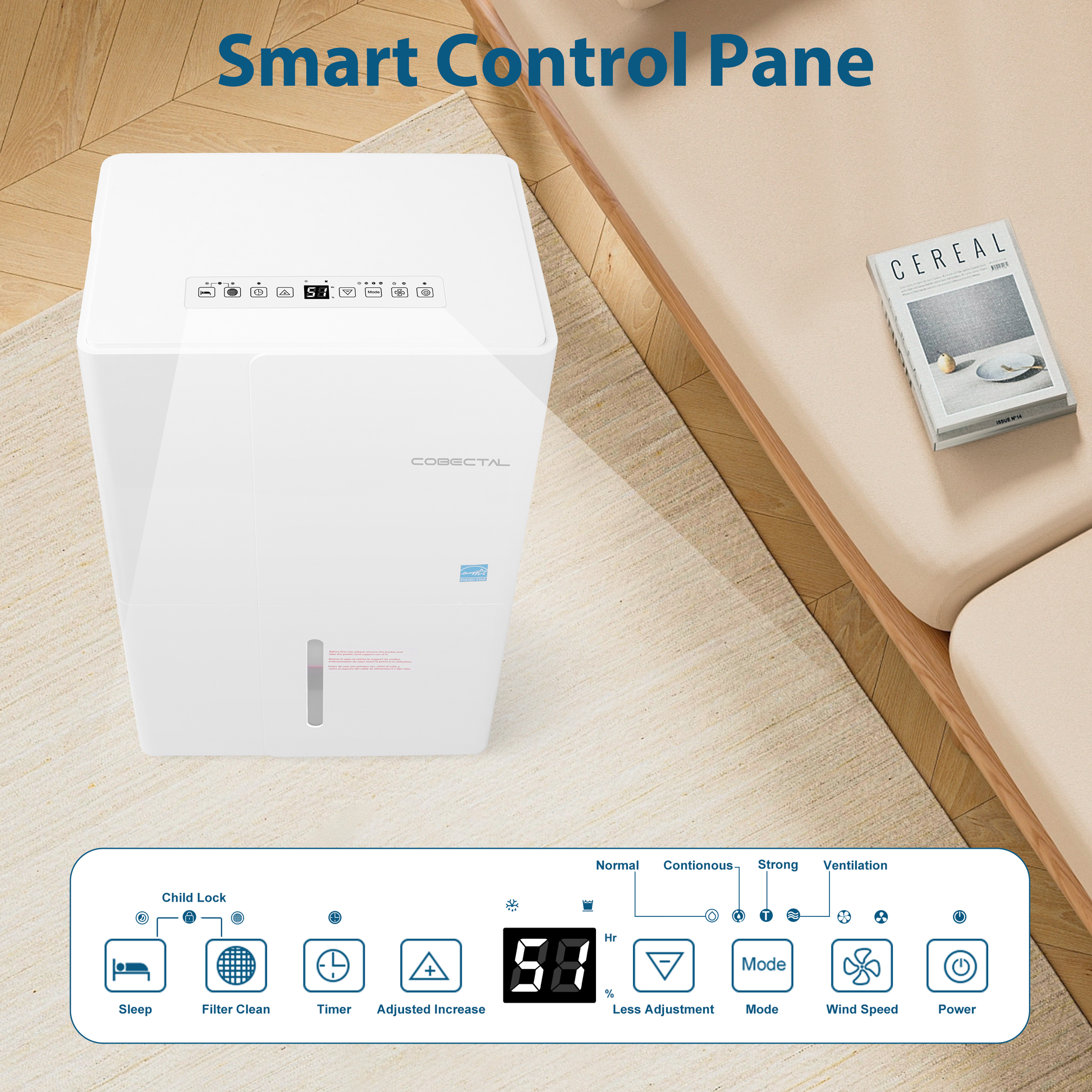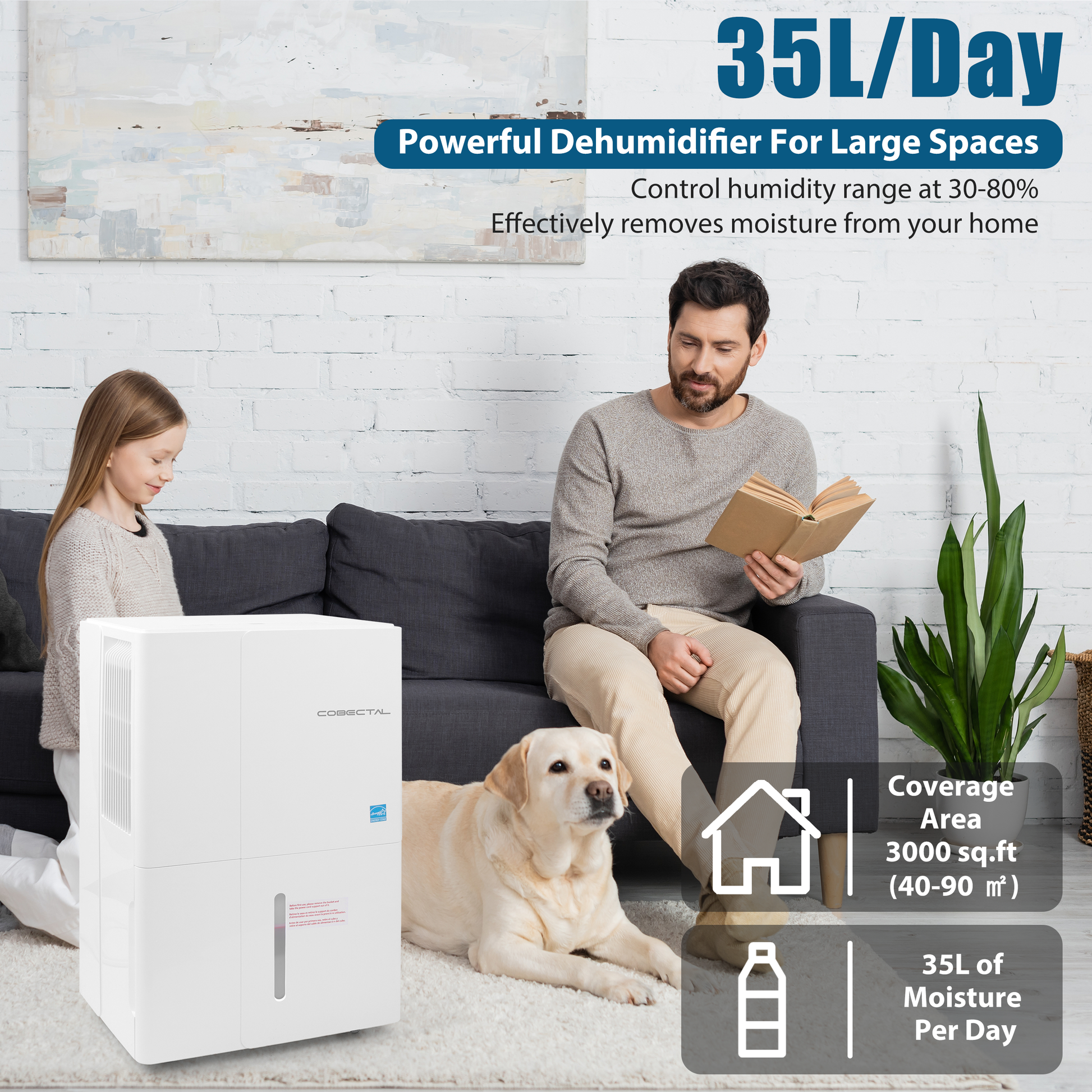 Discover the Best Dehumidifier for Your Home: Our Energy Star-rated dehumidifier is perfect for spaces up to 3500 sq. ft, making it the best dehumidifier for large areas including basements and large rooms. Efficiently remove moisture with a powerful compressor that handles up to 110 pints per day (under 86°F, 80% RH) or up to 45 pints per day (under 65°F, 60% RH). With adjustable humidity settings from 30% to 80%, it ensures a comfortable environment in your home.