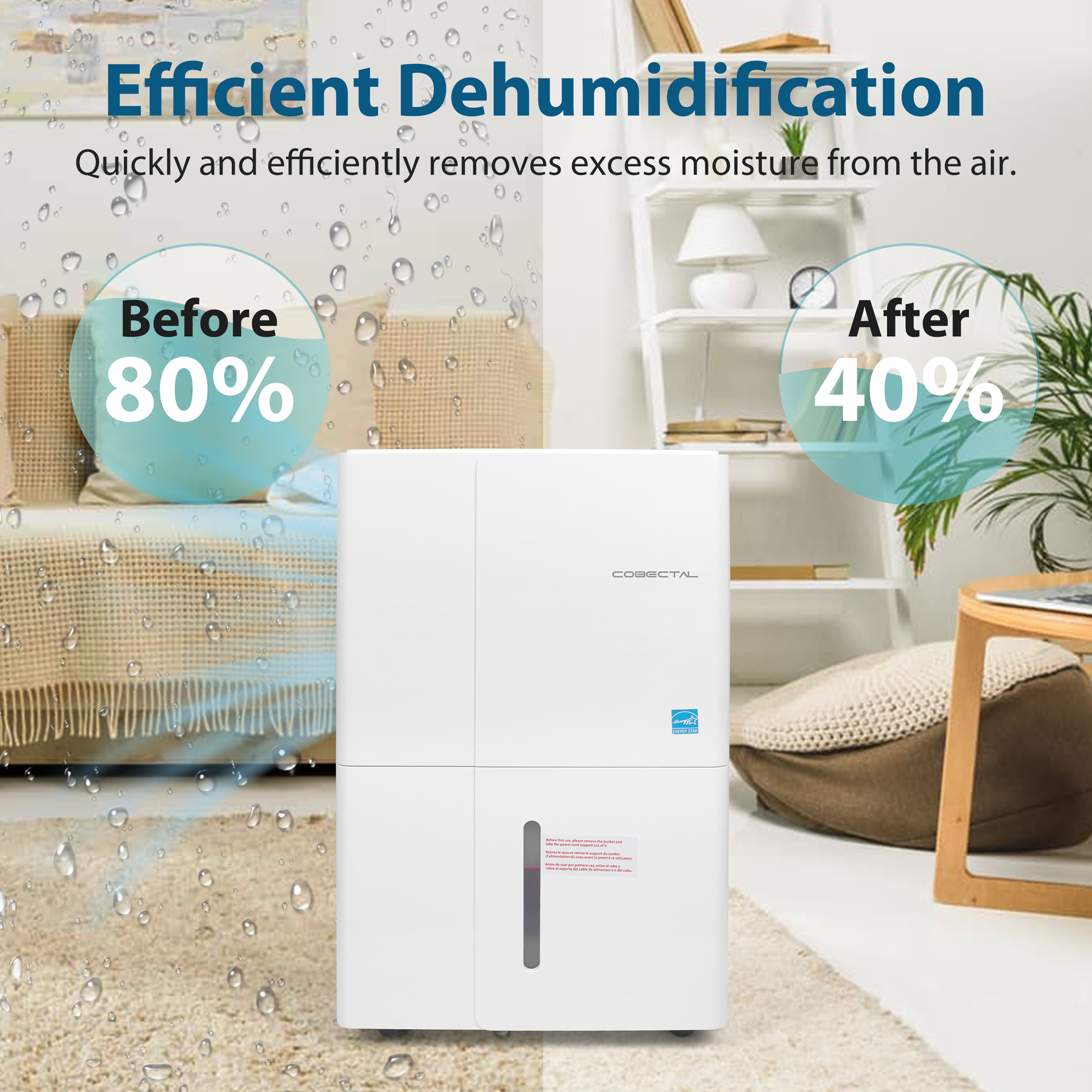 Durable, stable, silent and powerful. Cobectal dehumidifier utilize semiconductor condensation technology, offers a powerful mode that efficiently reduces humidity in the air. This advanced feature helps keep humidity levels below 45%.