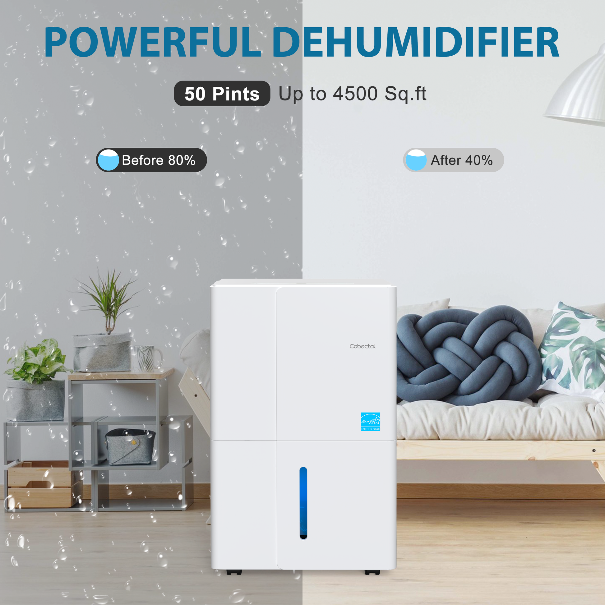 Cobectal’s dehumidifier for basements can handle spaces up to 4,500 sq. ft. This powerful compressor absorbs moisture while keeping your energy bills low. It removes up to 105 pints/day (86°F, 80% RH) and 50 pints/day (65°F, 60% RH) with humidity adjustment from 30% to 80%. Say goodbye to dampness!