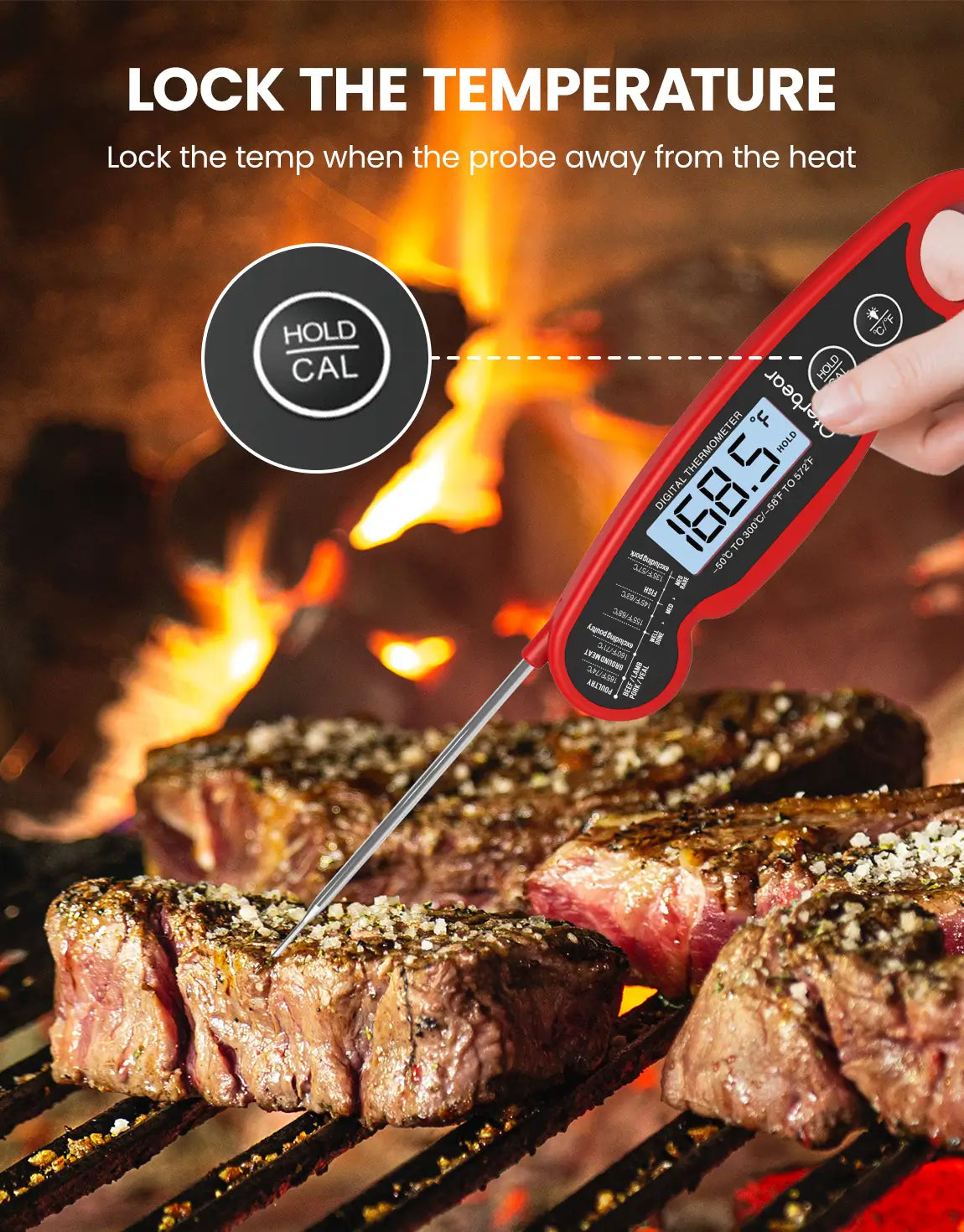 - CONVENIENT STORAGE SOLUTION: the combination of a large hanging hole and built-in magnets provides versatile storage options. Whether you are in the middle of a busy BBQ or cleaning up afterward, you can quickly place the thermometer in a spot that's convenient for you. This design helps in keeping your grilling area organized and ensures that the thermometer is always accessible when you need it