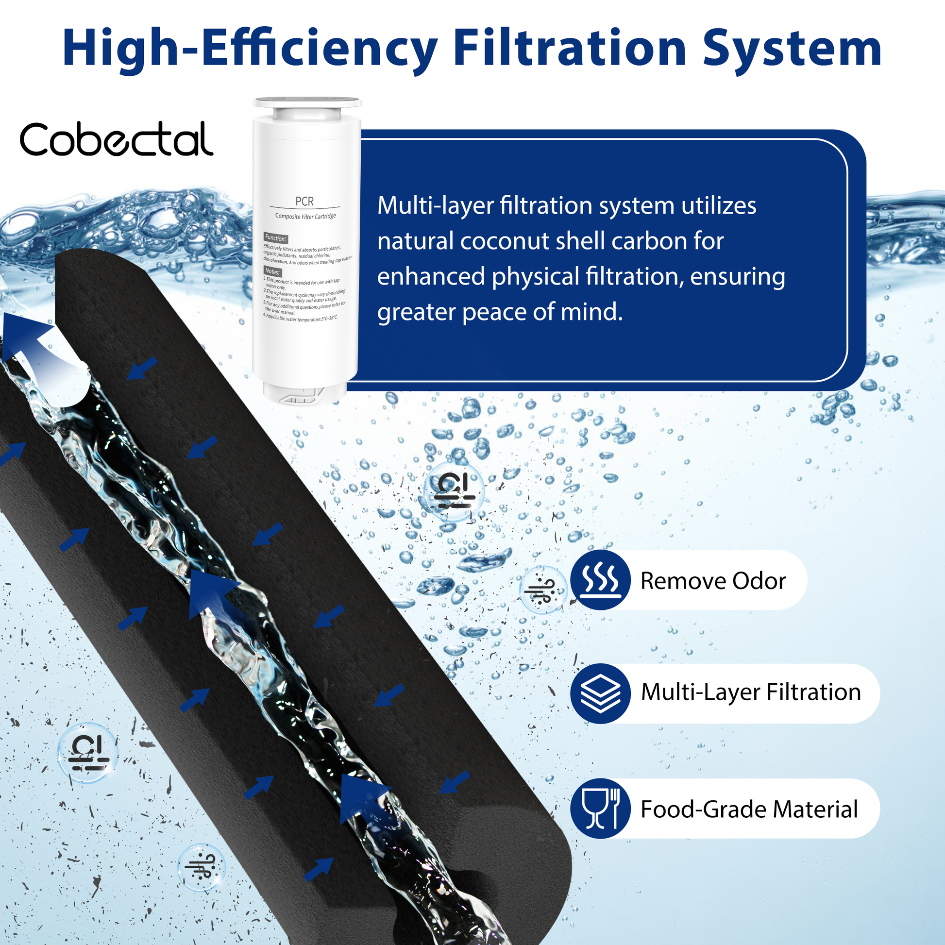 Cobectal reverse osmosis system's 5-stage 0.0001μm RO water filtration system can effectively remove pollutants from water, including heavy metals (lead, arsenic, aluminum, etc.), fluoride, PFAS, chlorine, chloramines and more than 1,000 possible contaminants. Note: Supported Water TDS Level Maximum (PPM) is 500 PPM.