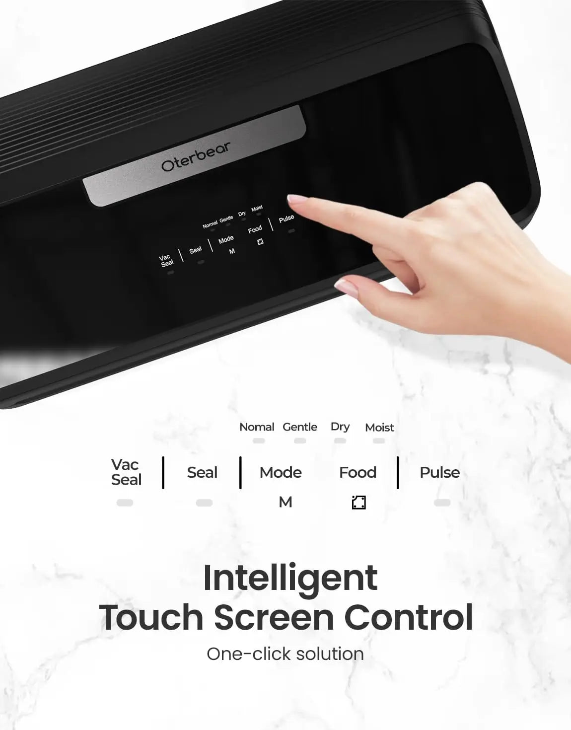 INTELLIGENT TOUCH OPERATE: The Vacuum Sealer has Intelligent touch sensor screen. One-click solution operation. Press the corresponding area to select the mode and complete the vacuum sealing or other operations. When the bag is thicker please long press more than 1.5 seconds. When you want to stop just press the same button.